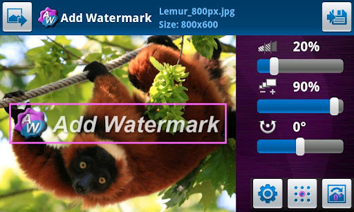 - To process multiple images in a batch-mode adjust watermark, enable "Add watermark fully automatically" then quit the app. From Gallery or another image viewer select all images you want to process, select Share / Add Watermark.